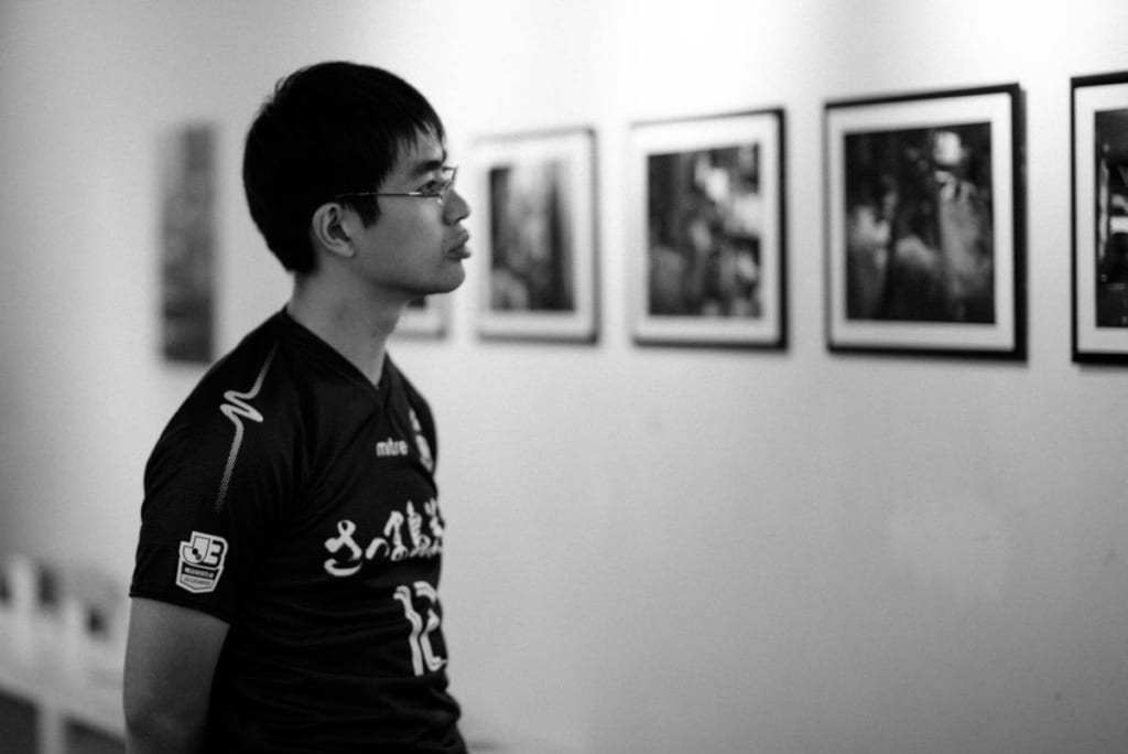 ぼくはこの人に期待してやまない。写真は地元サッカーチームを応援した帰りに、ぼくの写真展をのぞいてくれた時の井上さん。